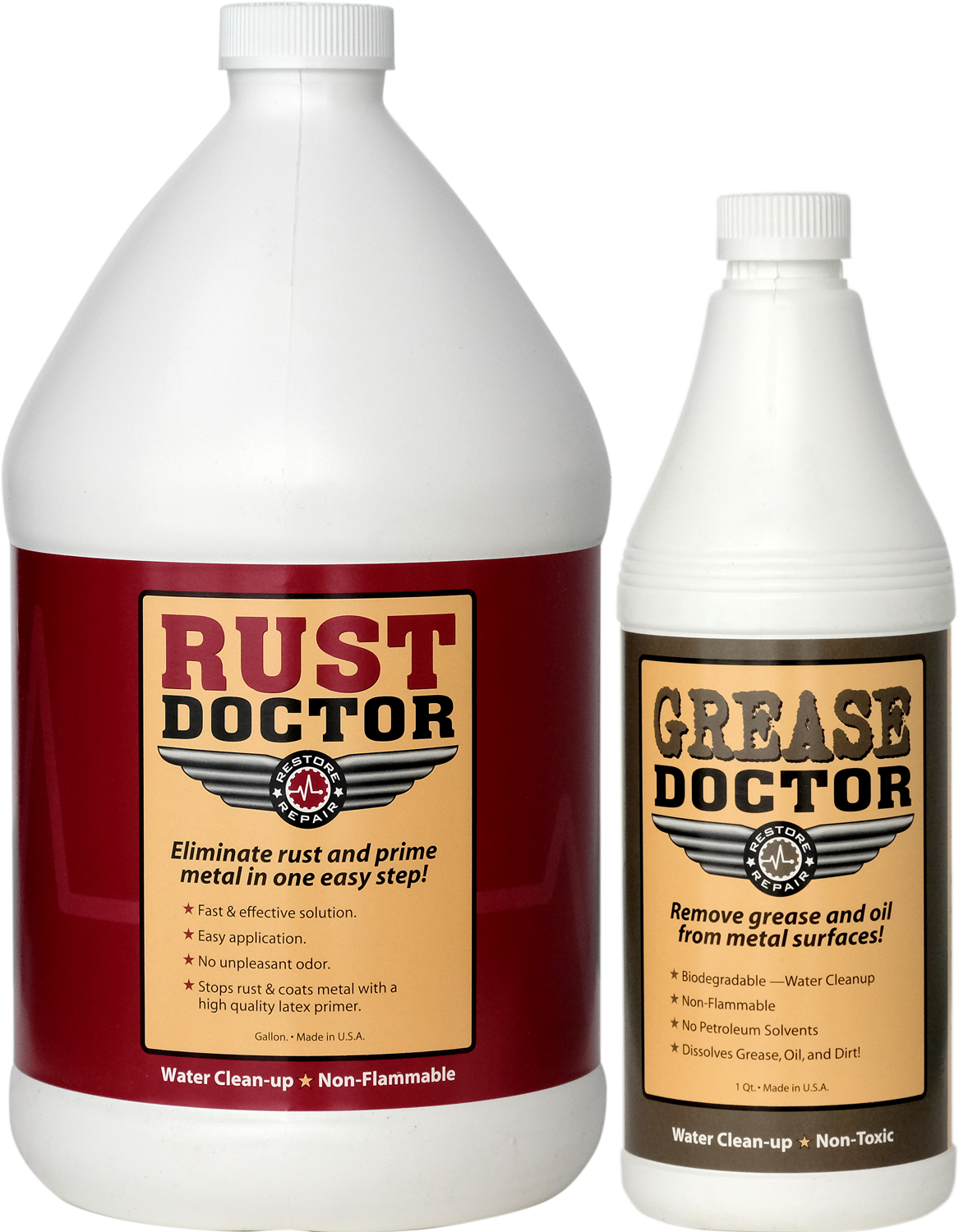 Rust Doctor allows you to coat rusty metal and then topcoat with any kind of paint without the need to sand or grind to bare metal. This unique product chemically converts the rust to black magnetite, which is a very hard form of iron oxide (that can be welded). Because magnetite will not react with moisture and oxygen, it creates a protective layer that keeps the base metal from rusting. In addition, a latex primer is left on the surface, allowing for topcoating with any kind of paint. In one step, Rust Doctor repairs rusty metal. Learn More.